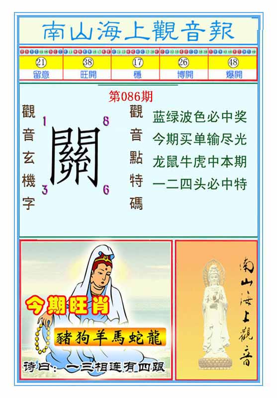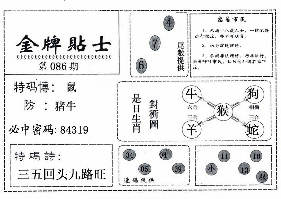 | 086期:⑦肖 | 狗鼠鸡牛马猴蛇 | 0 |