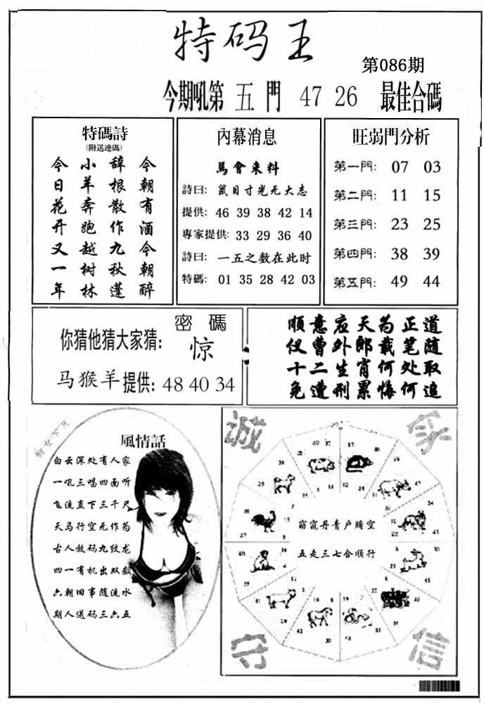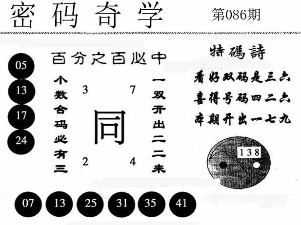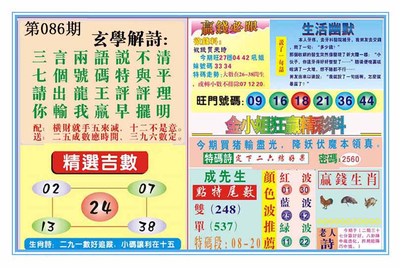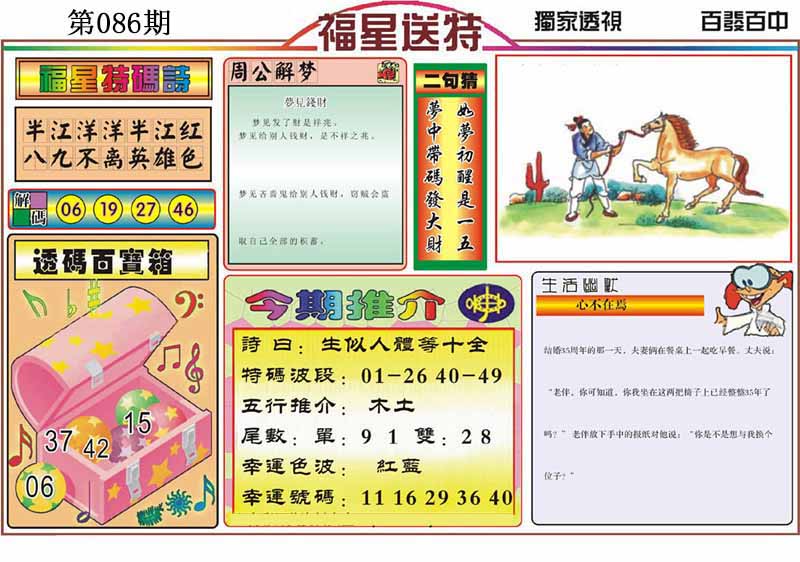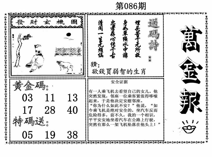 | 086期 :平特一尾✰00-10-20-30-40 |