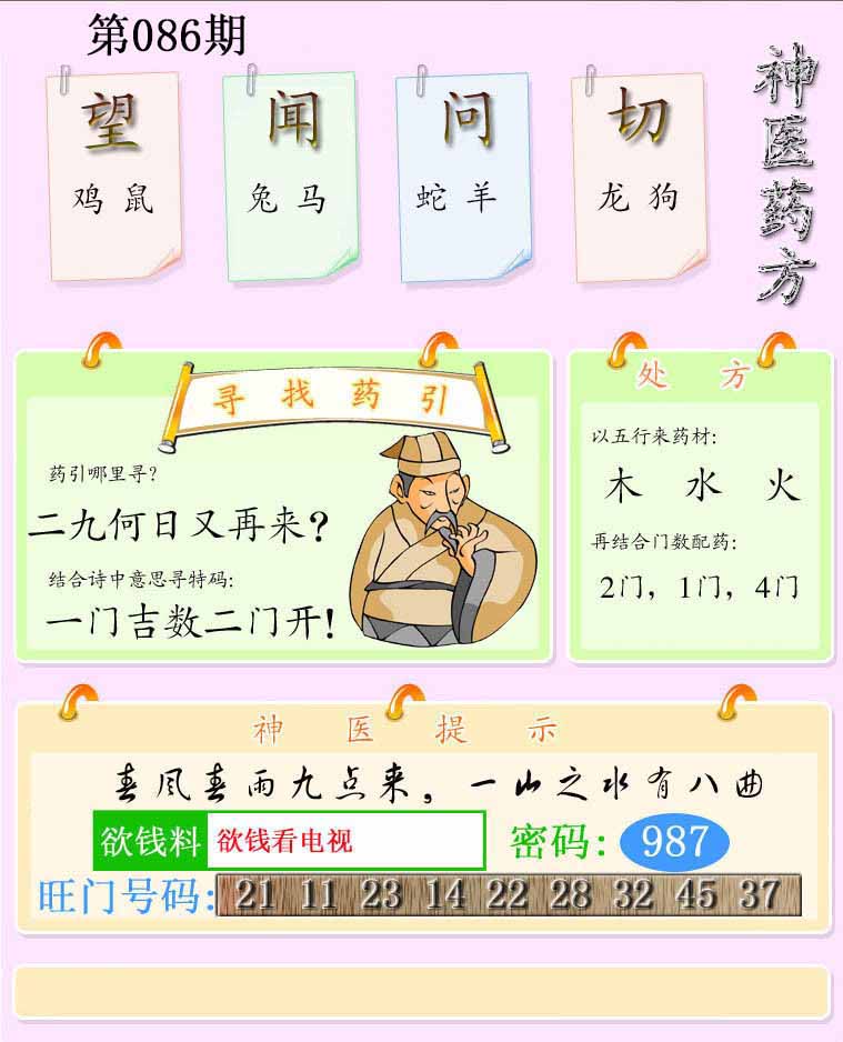 | 084期:⑨肖 | 猴羊龙虎马鼠牛蛇狗 | 羊24 |