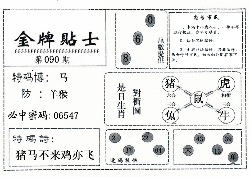 | 090期:⑨肖 | 虎牛蛇兔马龙狗猴羊 | 0 |