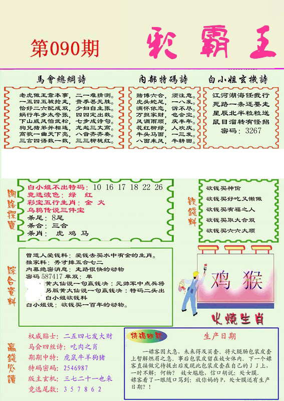| 089期:⑦肖 | 猴兔蛇狗牛猪虎 | 虎17 |