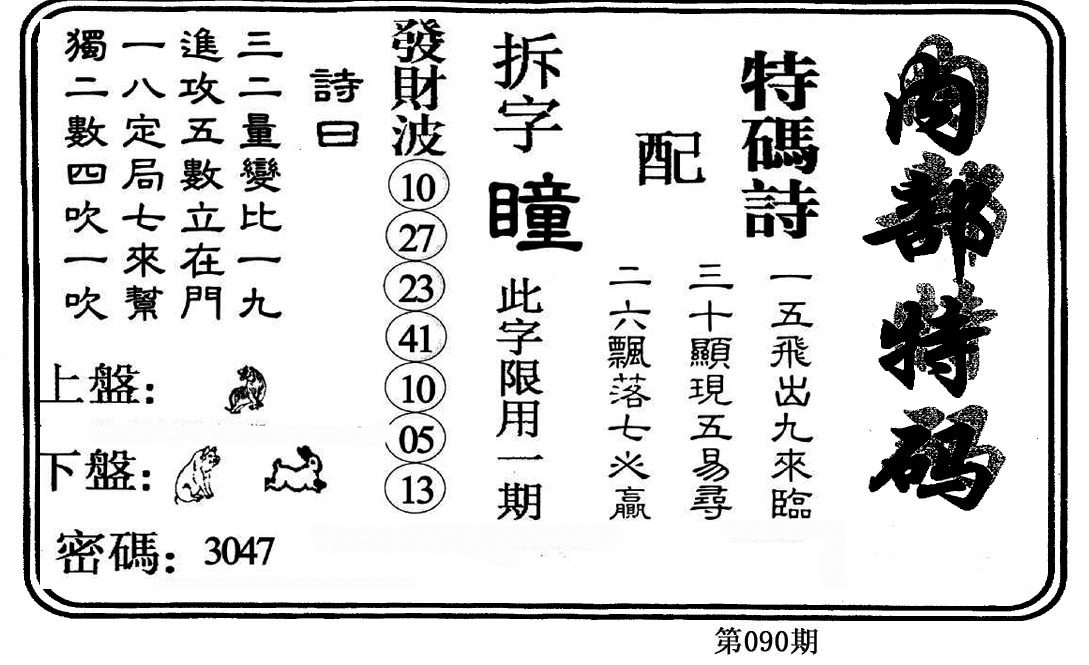 | 089期 :平特一尾✰00-10-20-30-40 |