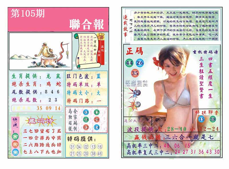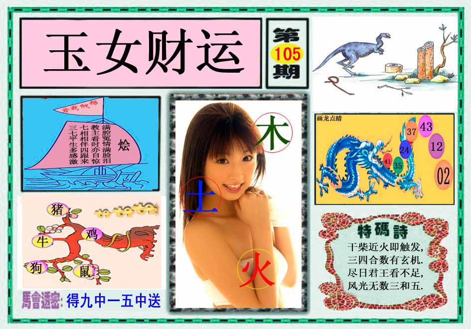 | 105期: 幸运一组三中三→规律①肖①码←7连中 | |