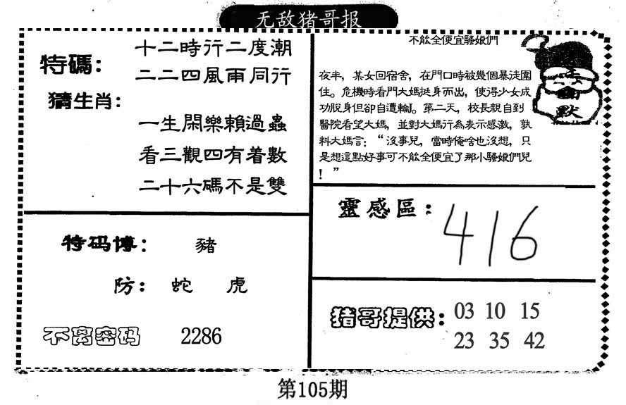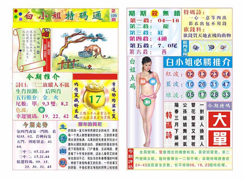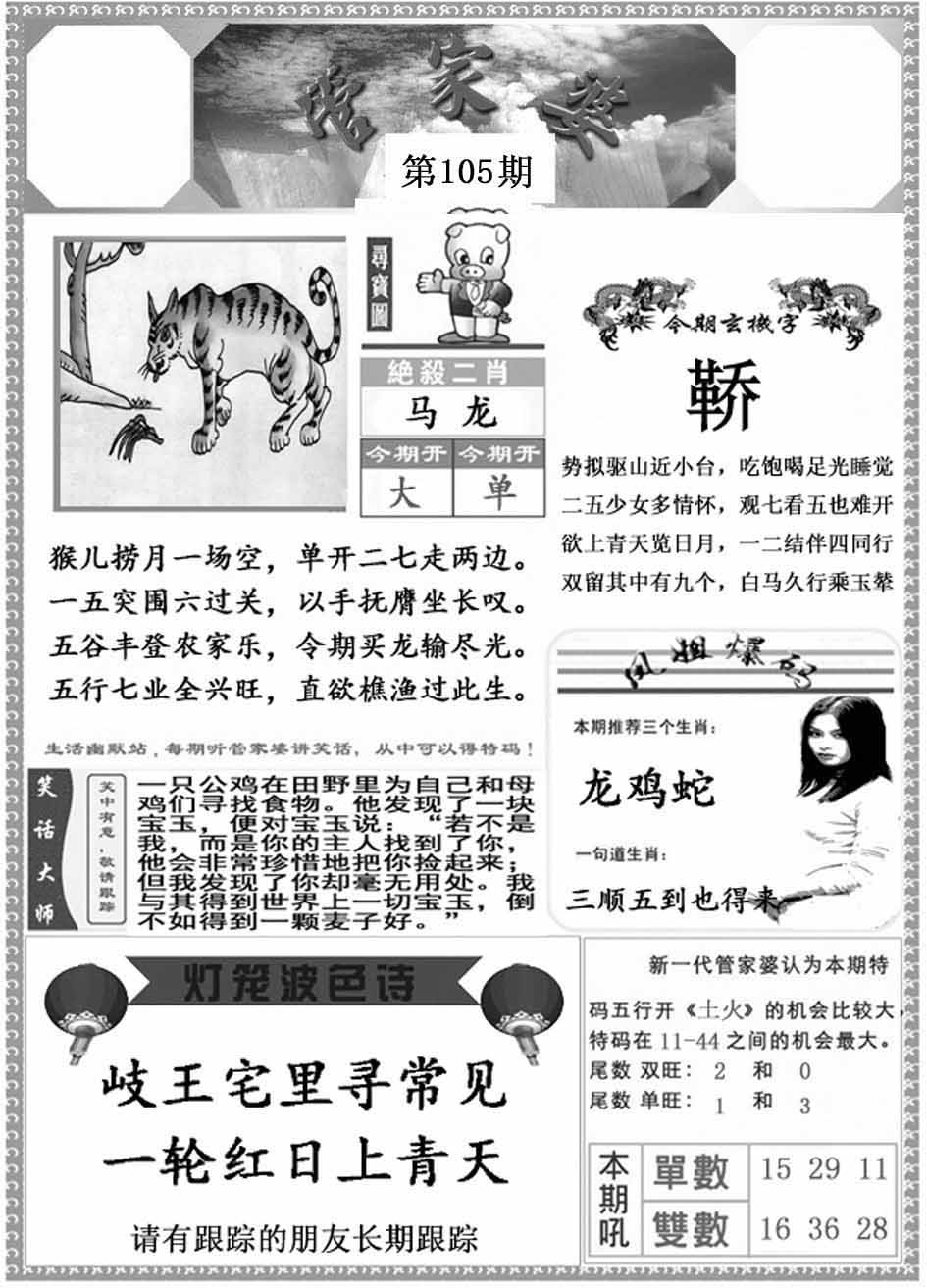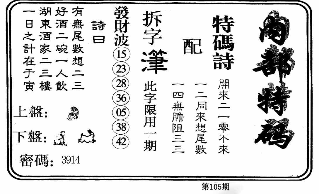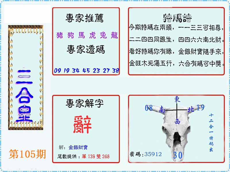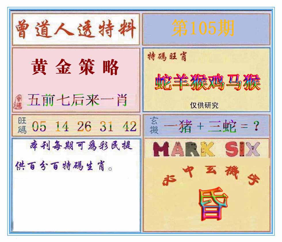 | 105期:⑤肖 | 蛇兔猪羊鼠 | 0 |