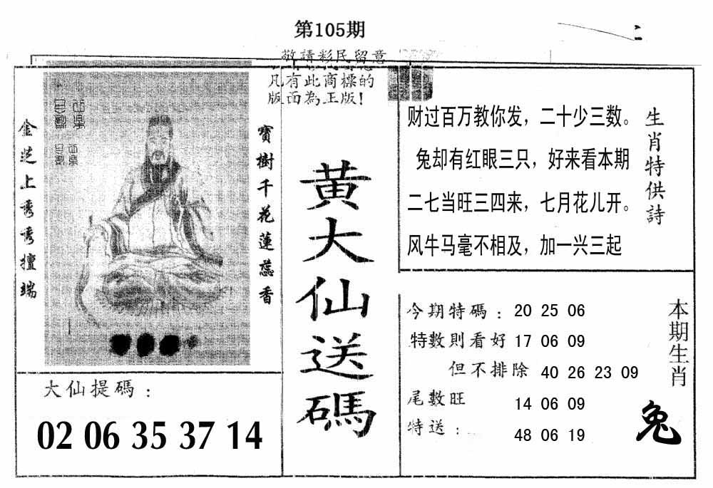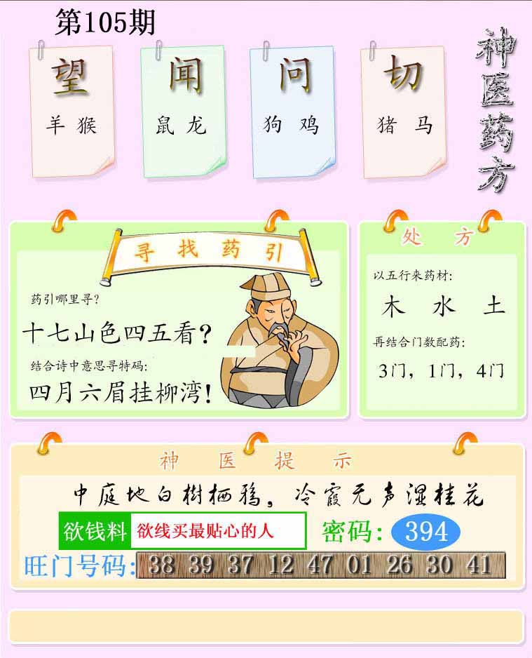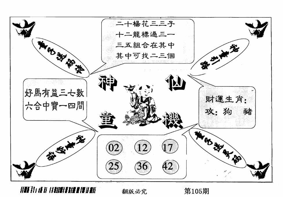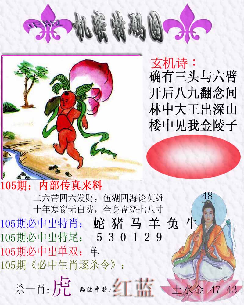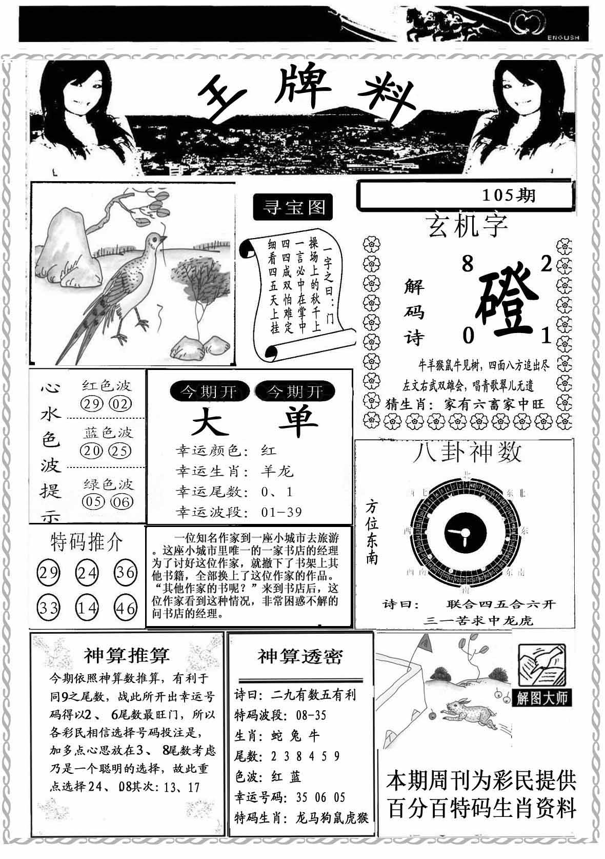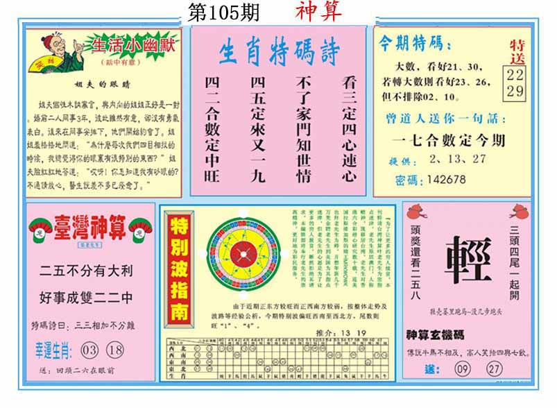 | 105期:⑤肖 | 蛇兔猪羊鼠 | 0 |