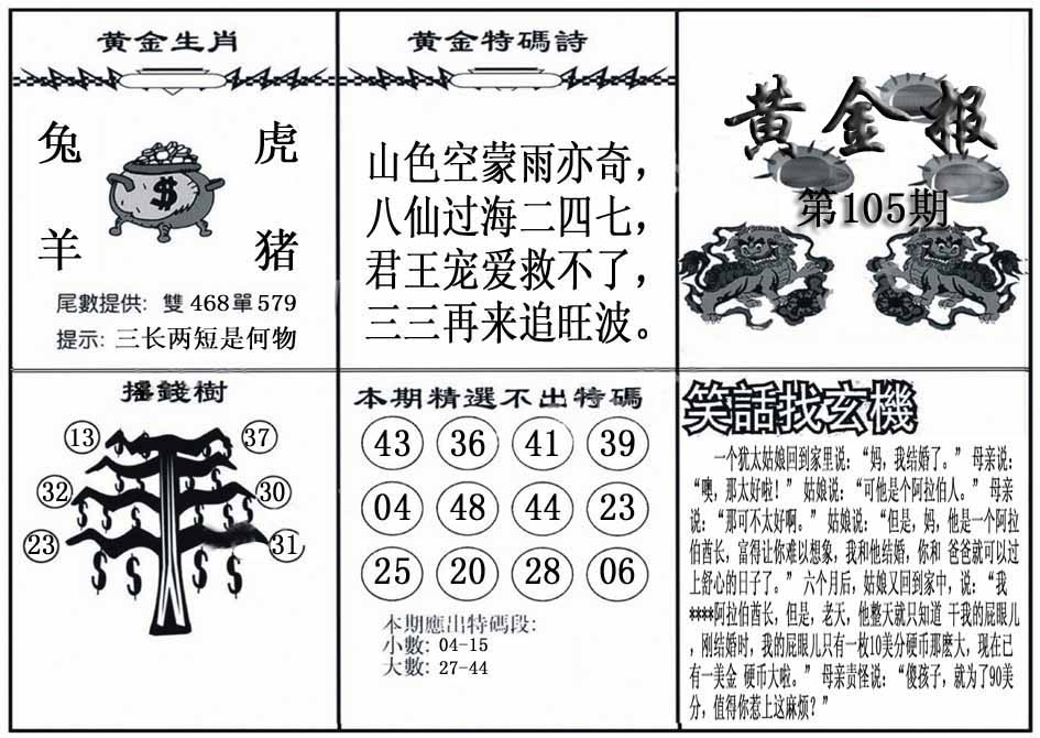 | 103期:⑤肖 | 鼠牛猴羊蛇 | 猪32 |
