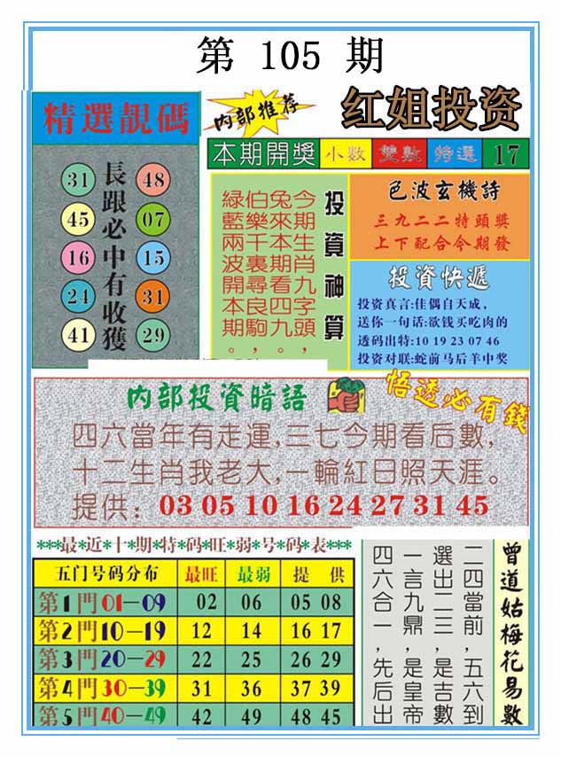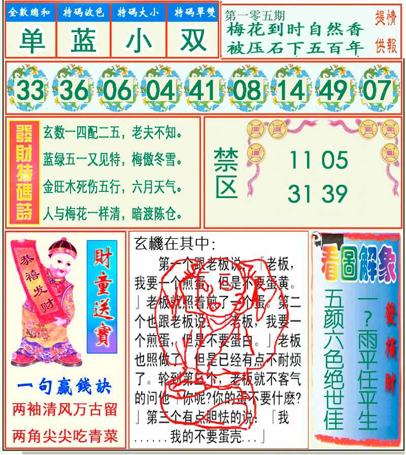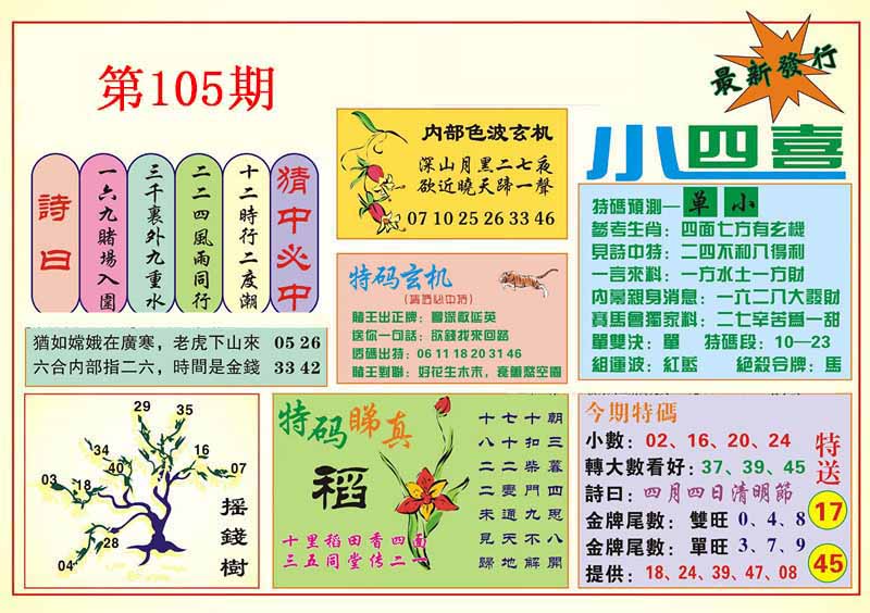 | 104期 :平特一尾✰05-15-25-35-45 |
