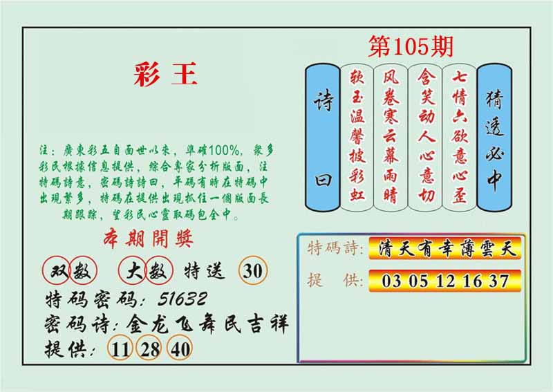 | 105期 :平特一尾✰02-12-22-32-42 |