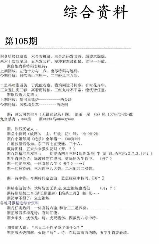 | 105期:⑨肖 | 蛇兔猪羊鼠猴虎鸡狗 | 0 |