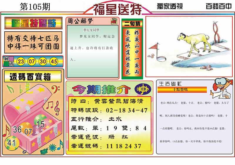 | 105期:【神算子】●平特一肖●专家●二肖中特★ | |