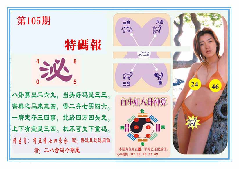 | 105期:⑦肖 | 蛇兔猪羊鼠猴虎 | 0 |