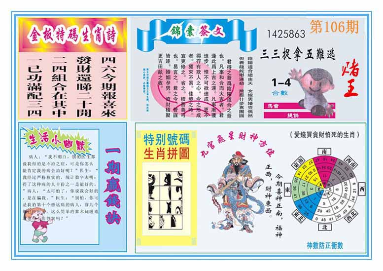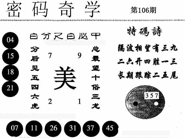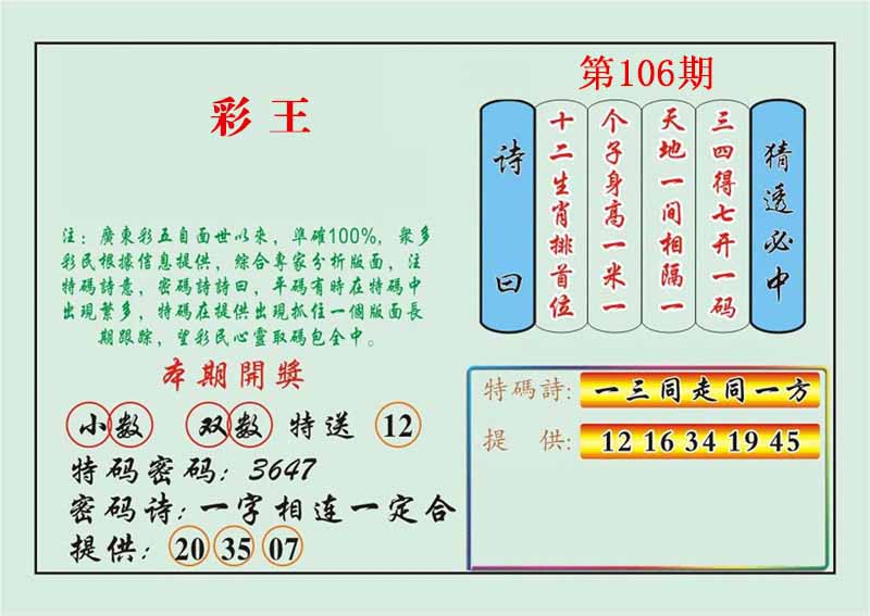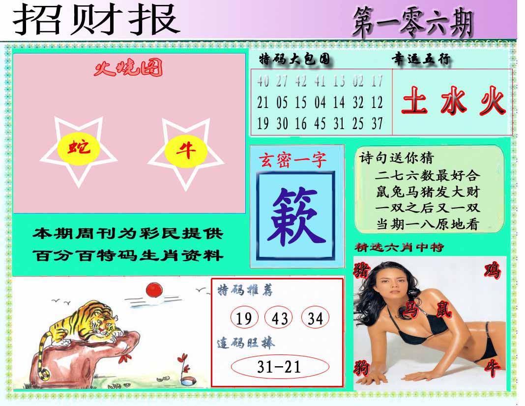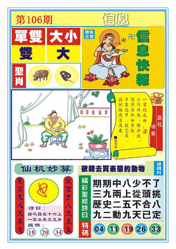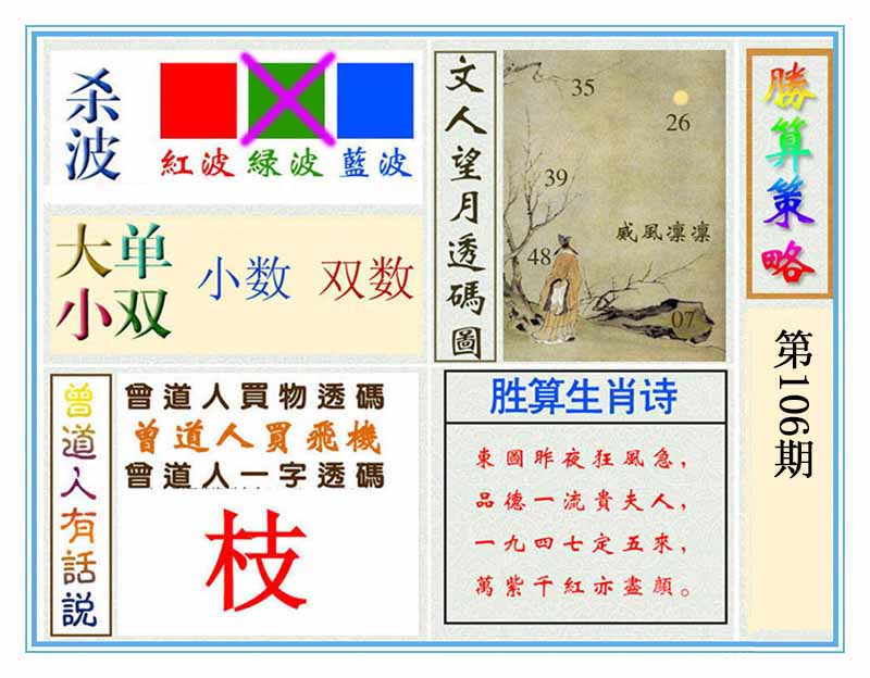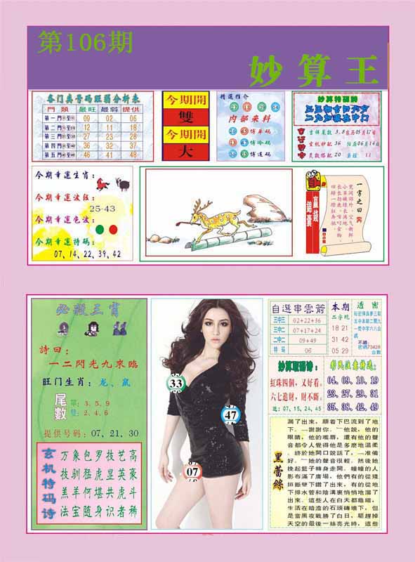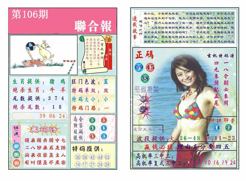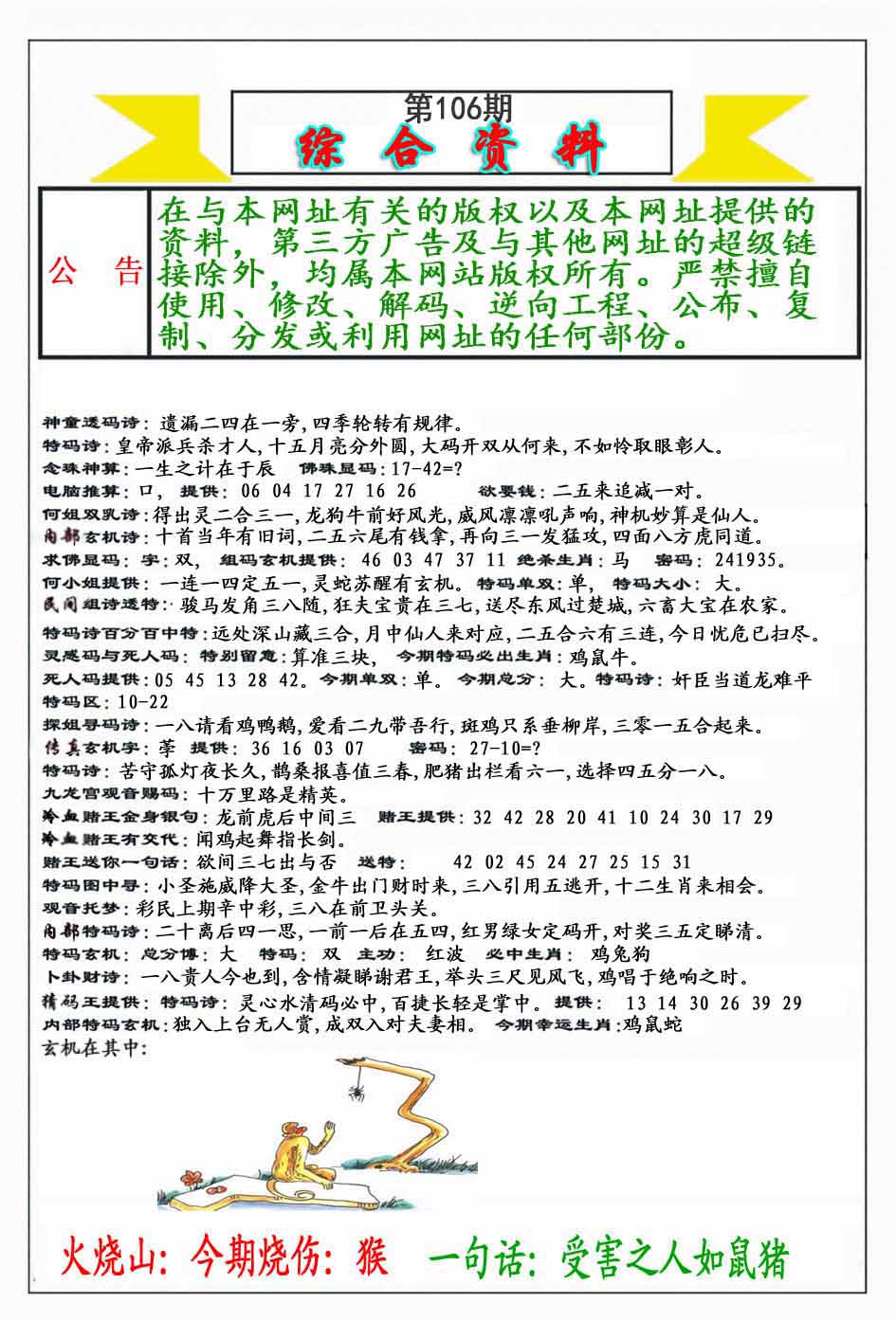 | 106期: 幸运一组三中三→规律①肖①码←7连中 | |