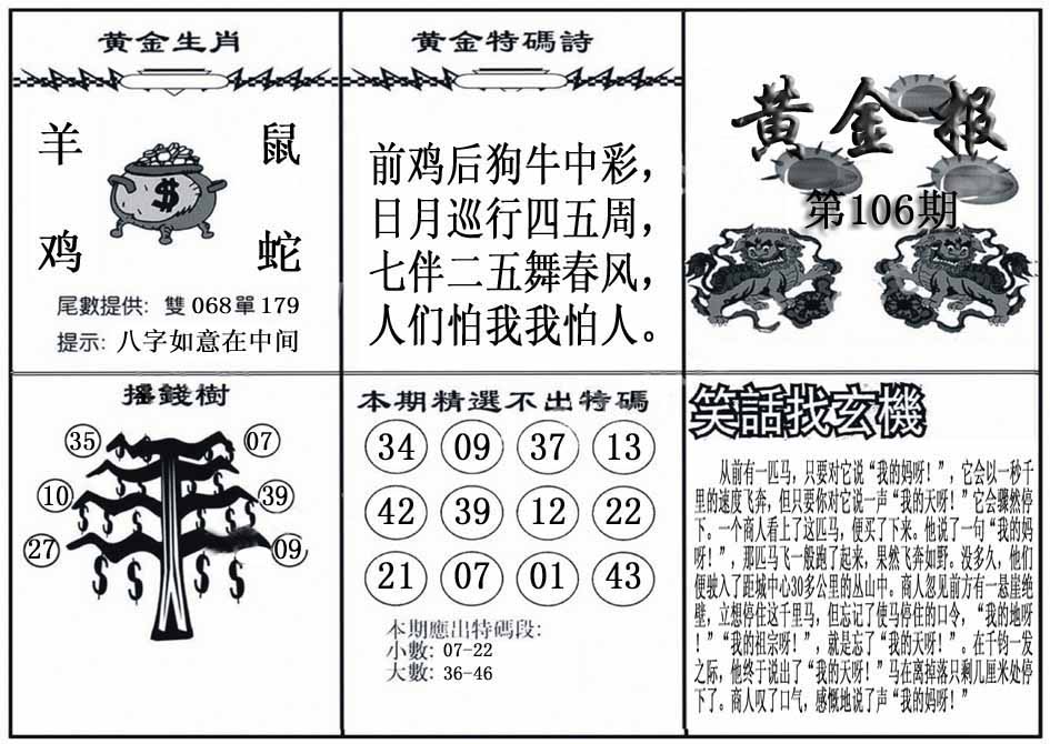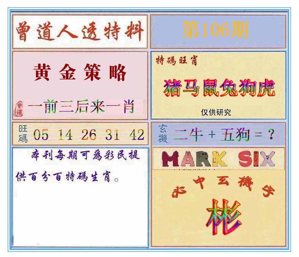 | 106期:⑦肖 | 狗牛龙猴羊虎鼠 | 0 |