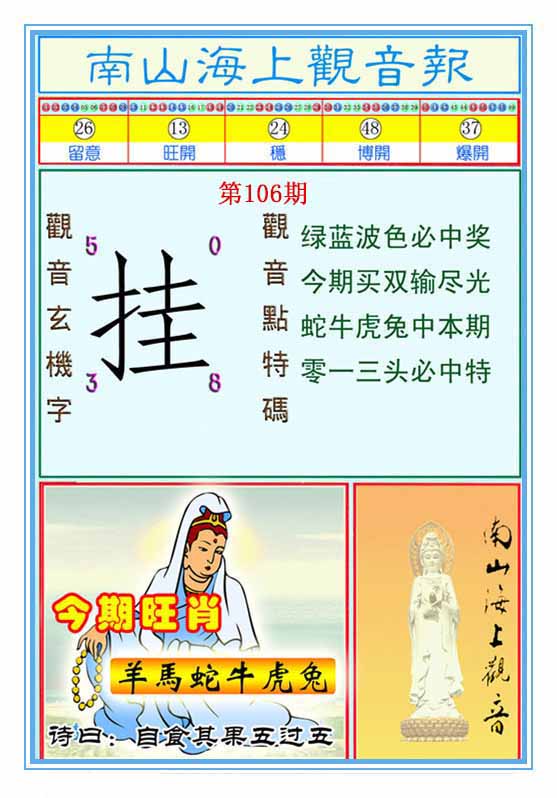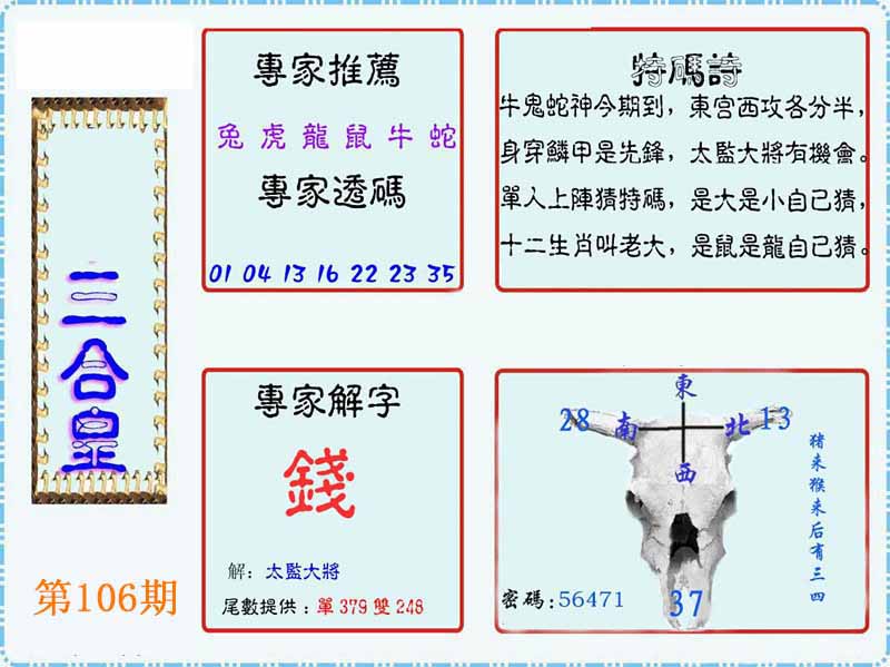 | 106期:⑤肖 | 狗牛龙猴羊 | 0 |