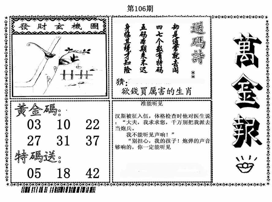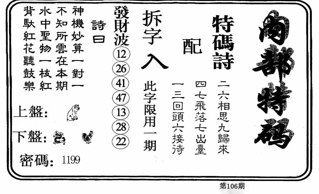 | 106期 :平特一尾✰00-10-20-30-40 |