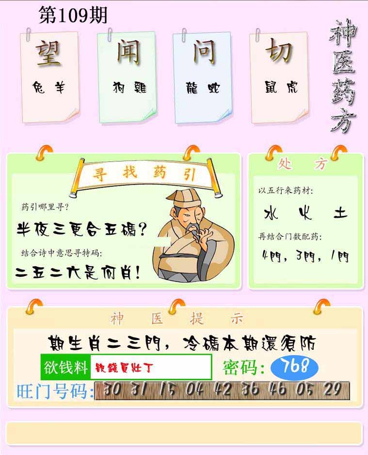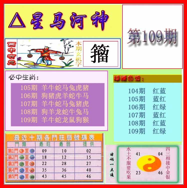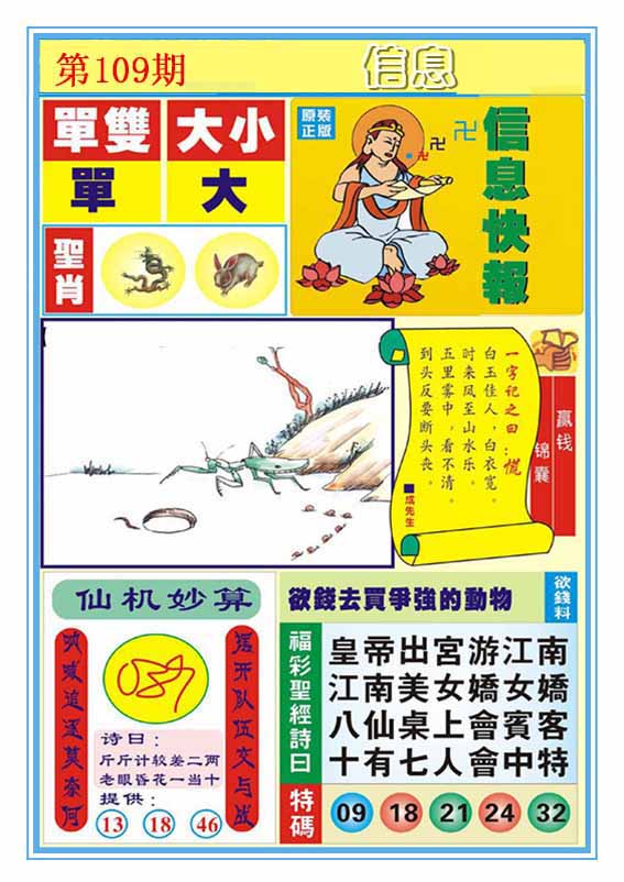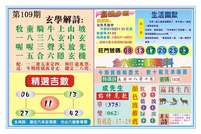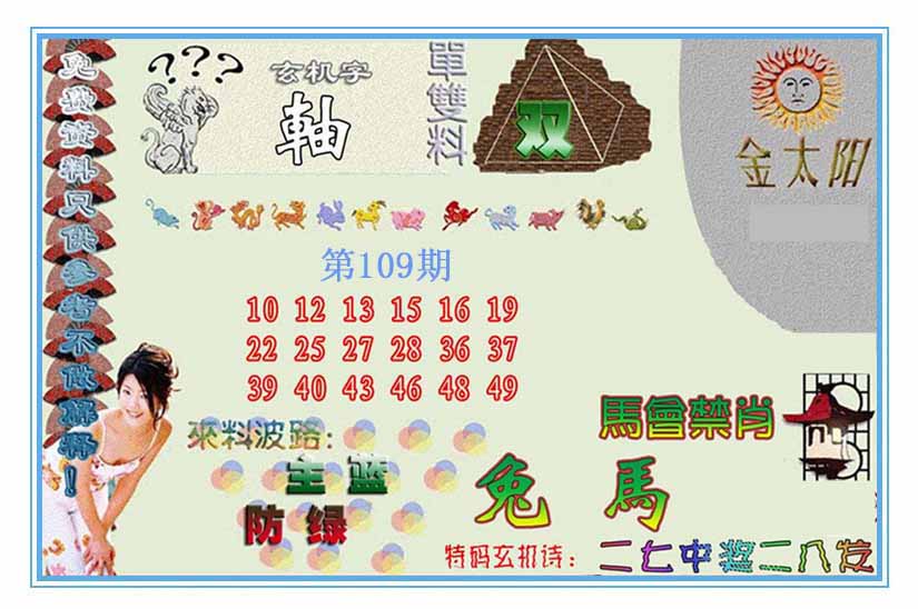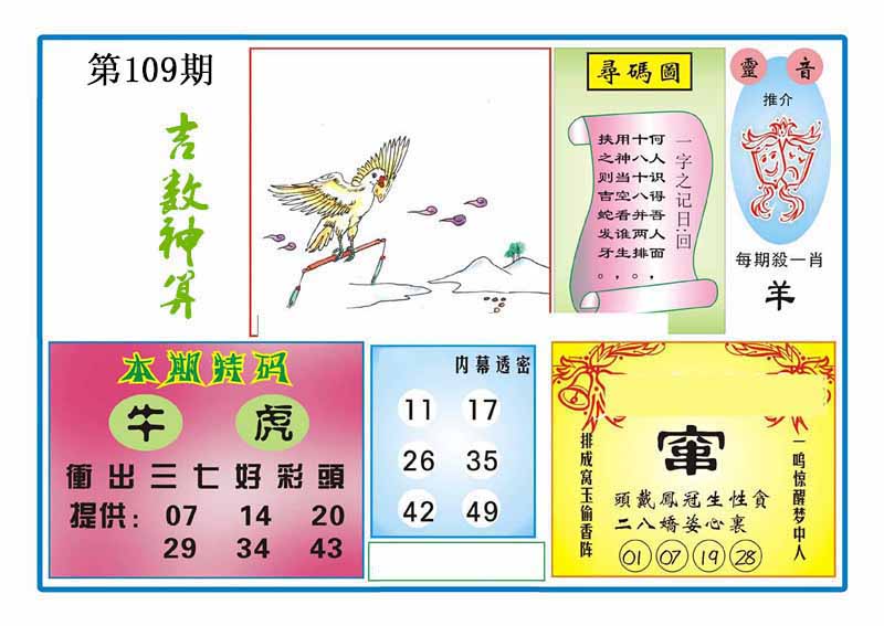 | 109期:⑨肖 | 马虎兔鼠猪龙蛇羊牛 | 0 |