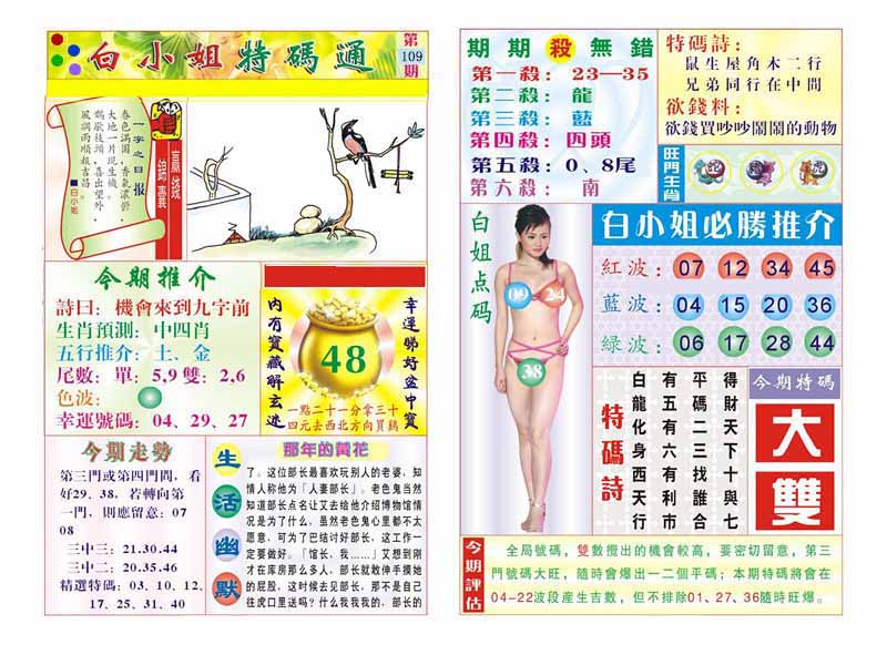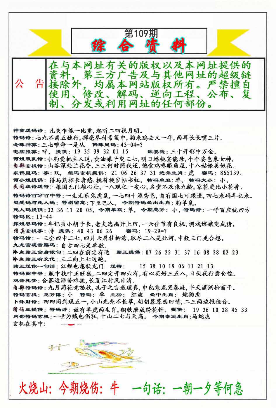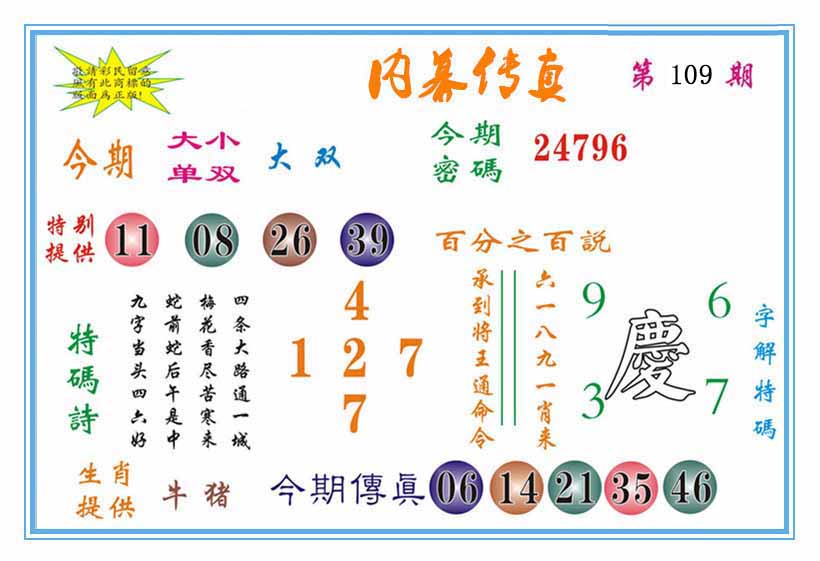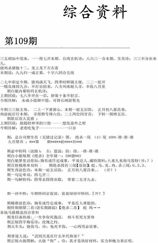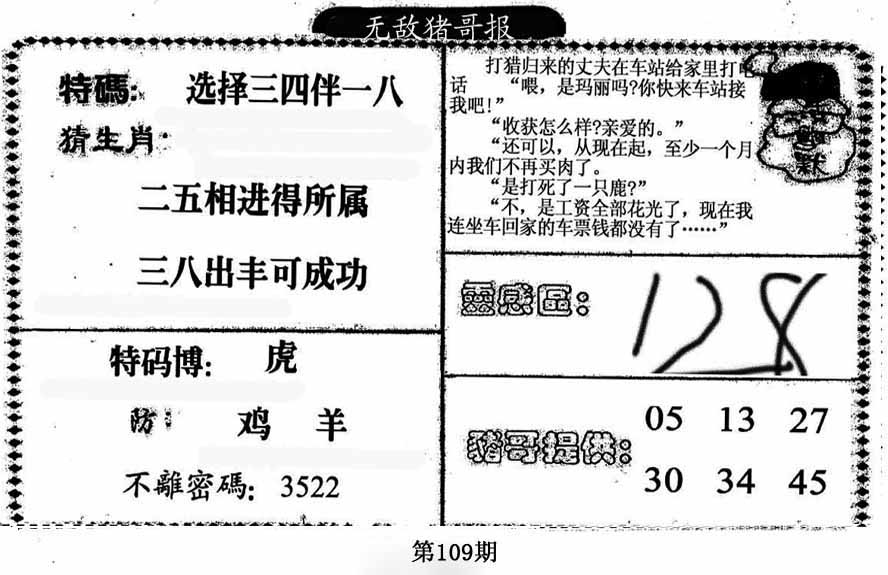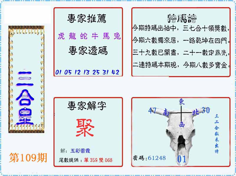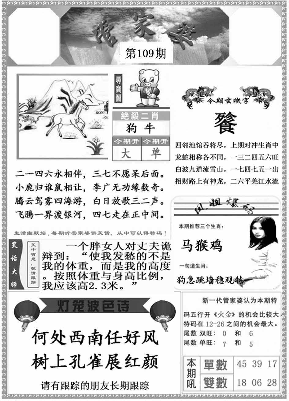 | 109期:⑤肖 | 马虎兔鼠猪 | 0 |
