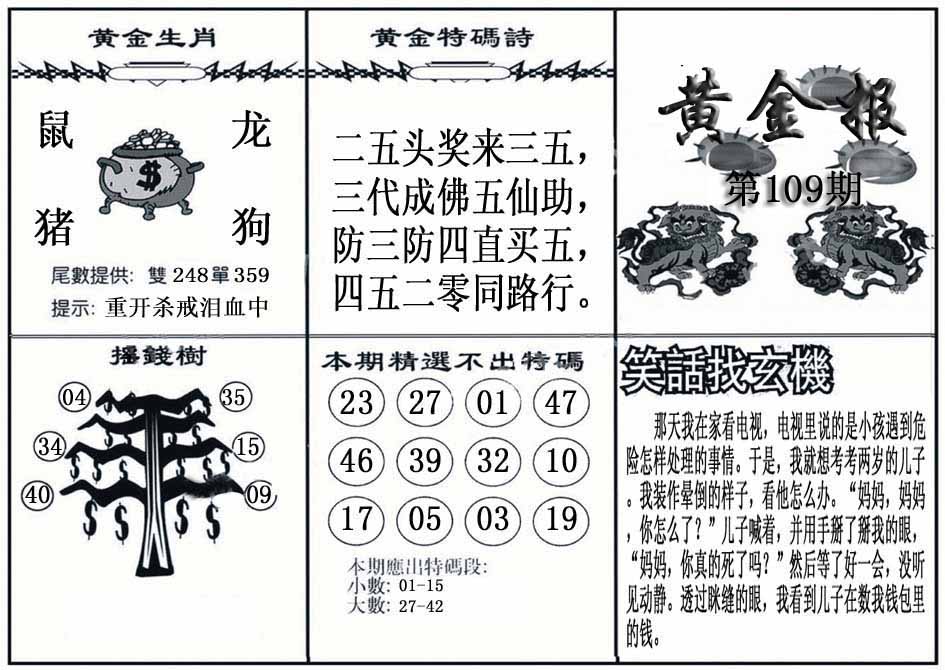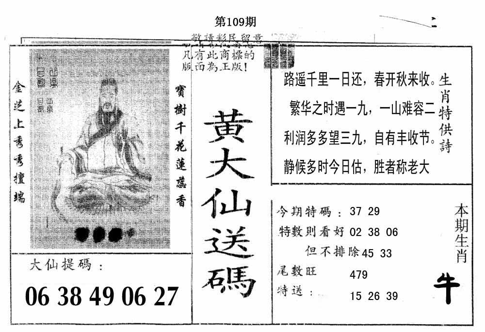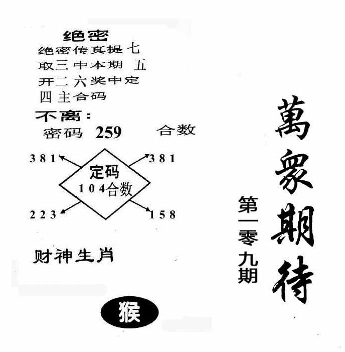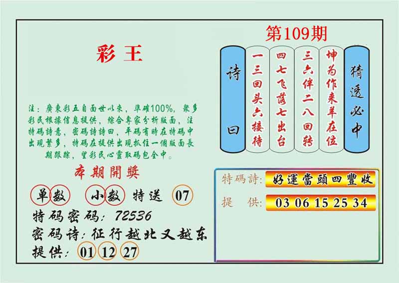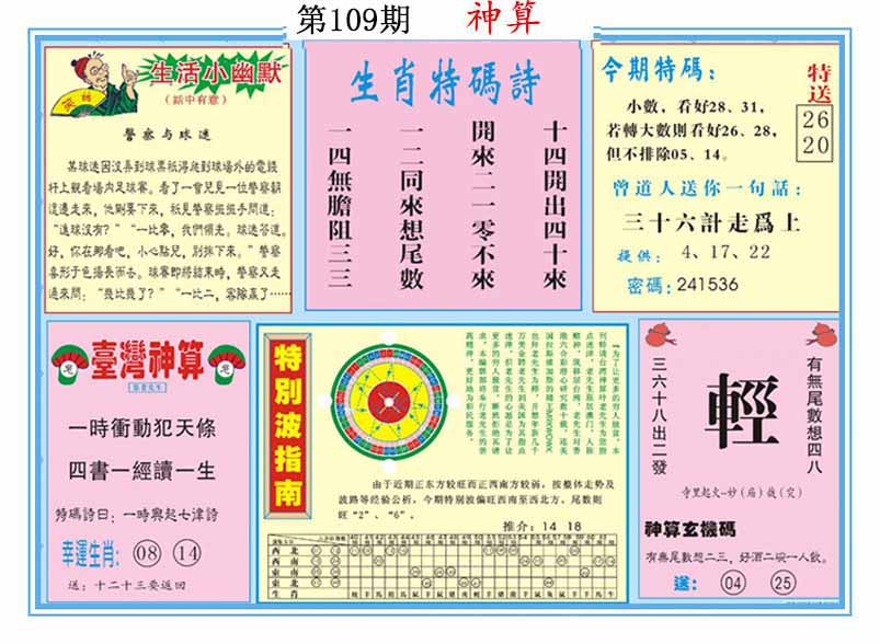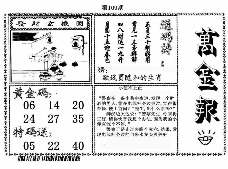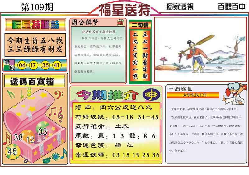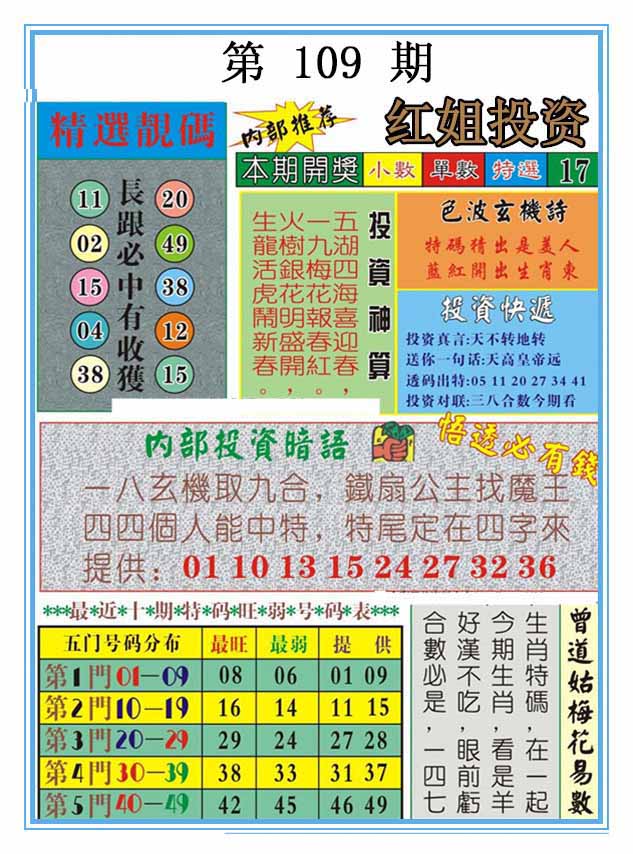 | 109期:⑤肖 | 马虎兔鼠猪 | 0 |