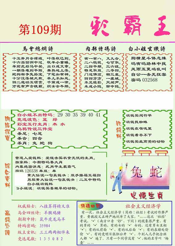 | 109期:⑦肖 | 马虎兔鼠猪龙蛇 | 0 |