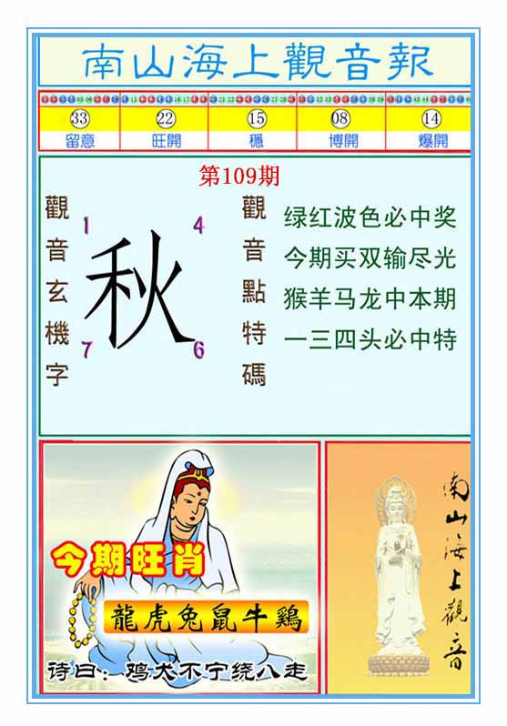 | 108期:⑦肖 | 鼠兔蛇狗鸡羊虎 | 猴23 |
