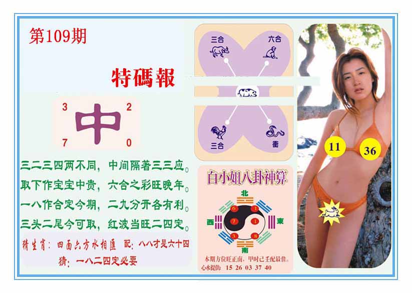 | 109期: 幸运一组三中三→规律①肖①码←7连中 | |