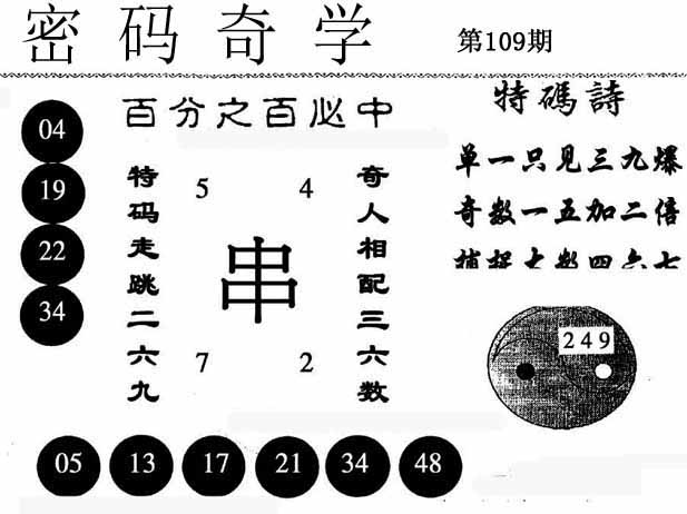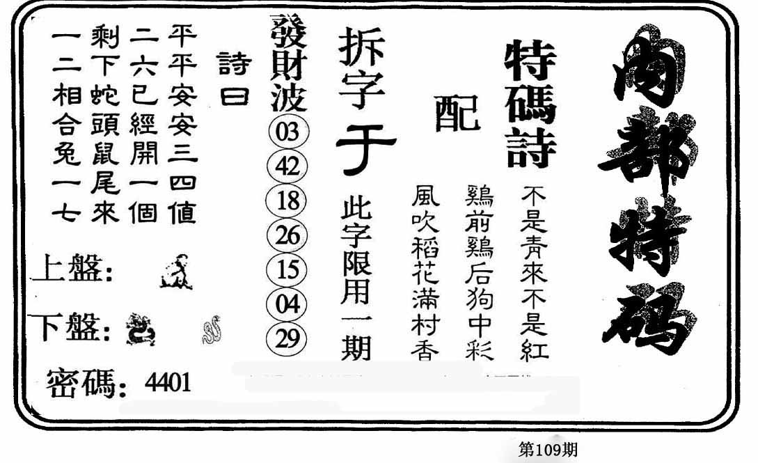 | 109期 :平特一尾✰04-14-24-34-44 |