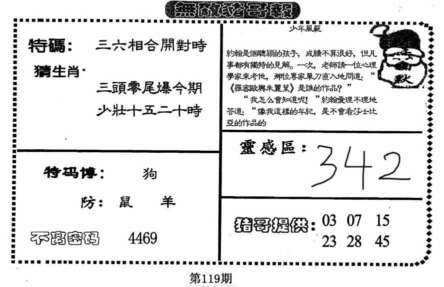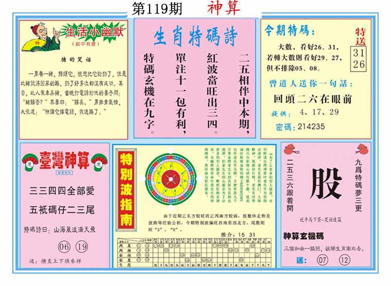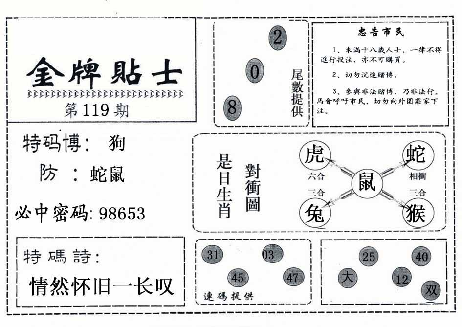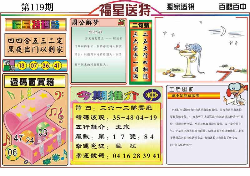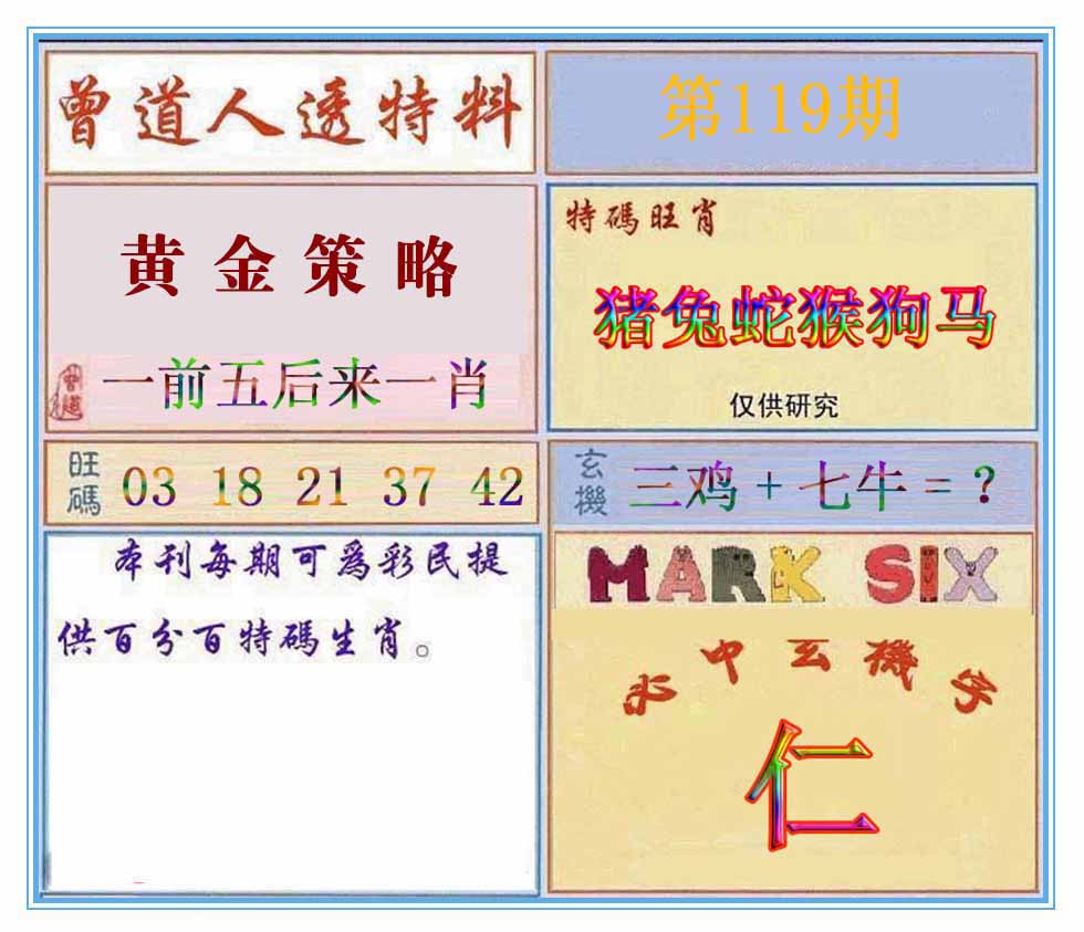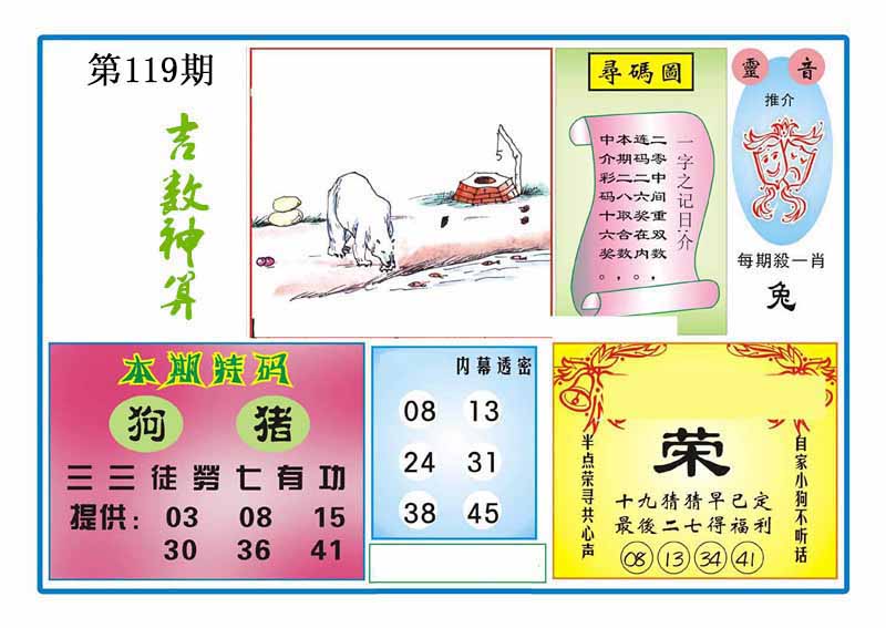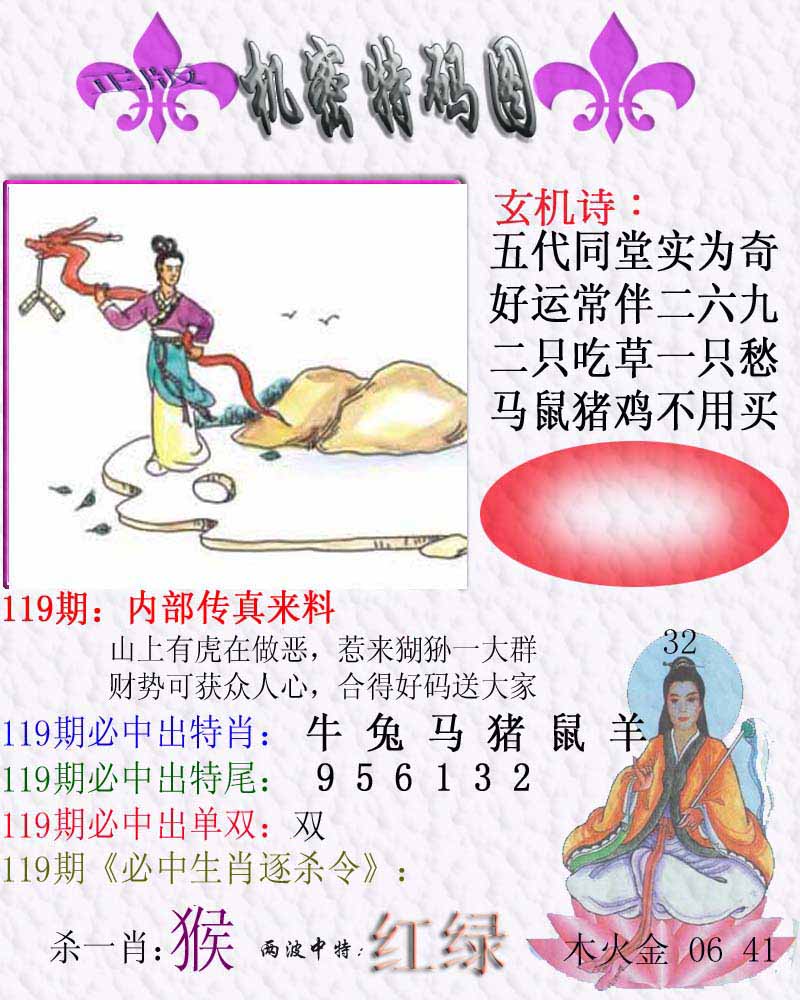 | 118期:⑦肖 | 羊猪马鸡猴狗鼠 | 0 |