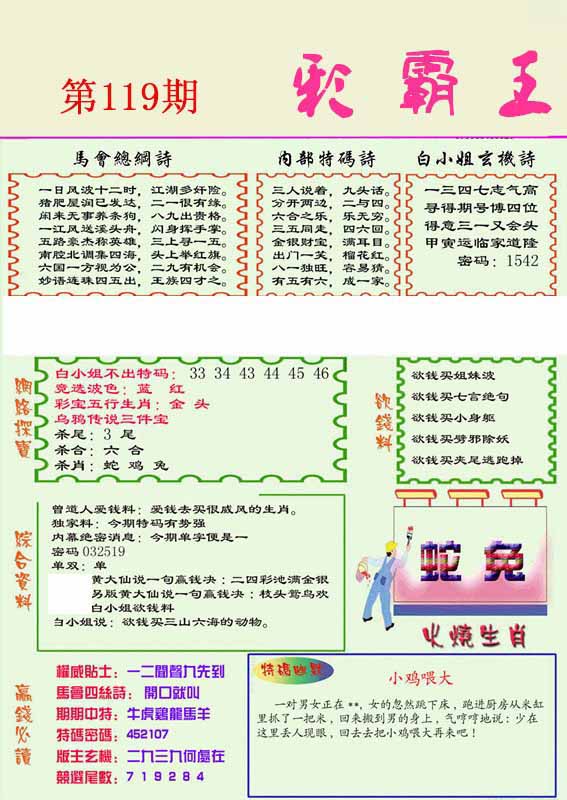 | 112期: 金牛王 【双数+小数】开:鸡22准 |