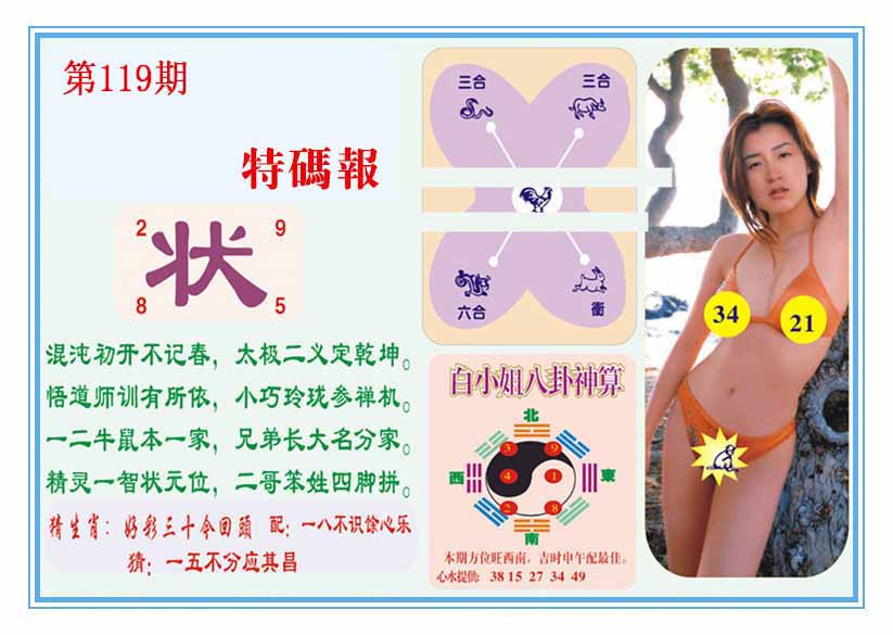 | 118期: 幸运一组三中三→规律①肖①码←7连中 | |