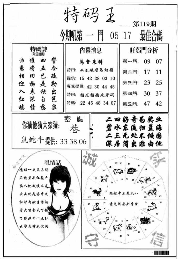 | 116期:⑤肖 | 狗龙牛兔鸡 | 虎05 |