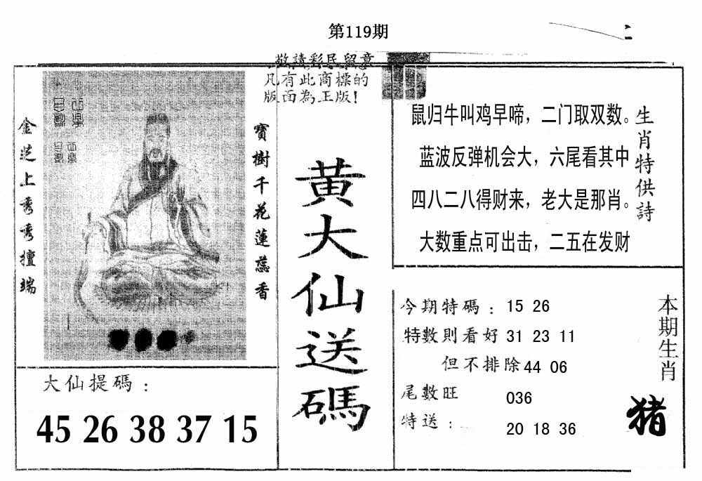 | 116期 :杀26 31 27 36 35 23 02 39 48 38开:虎05 |