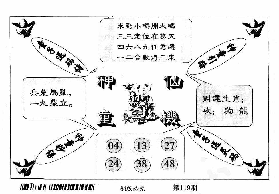 | 116期:⑦肖 | 狗龙牛兔鸡猴马 | 虎05 |