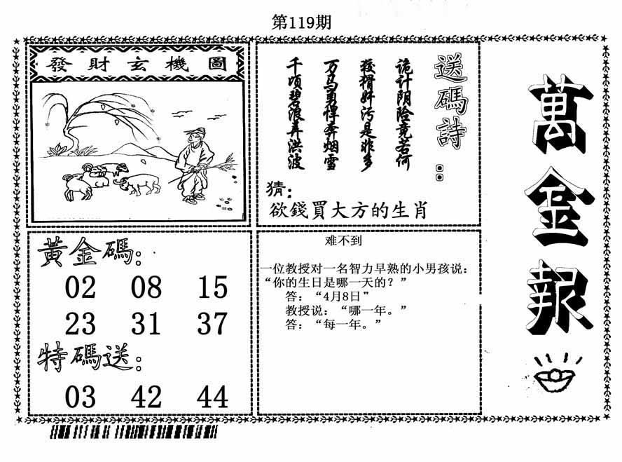 | 111期: 金牛王 【双数+大数】开:猪44准 |