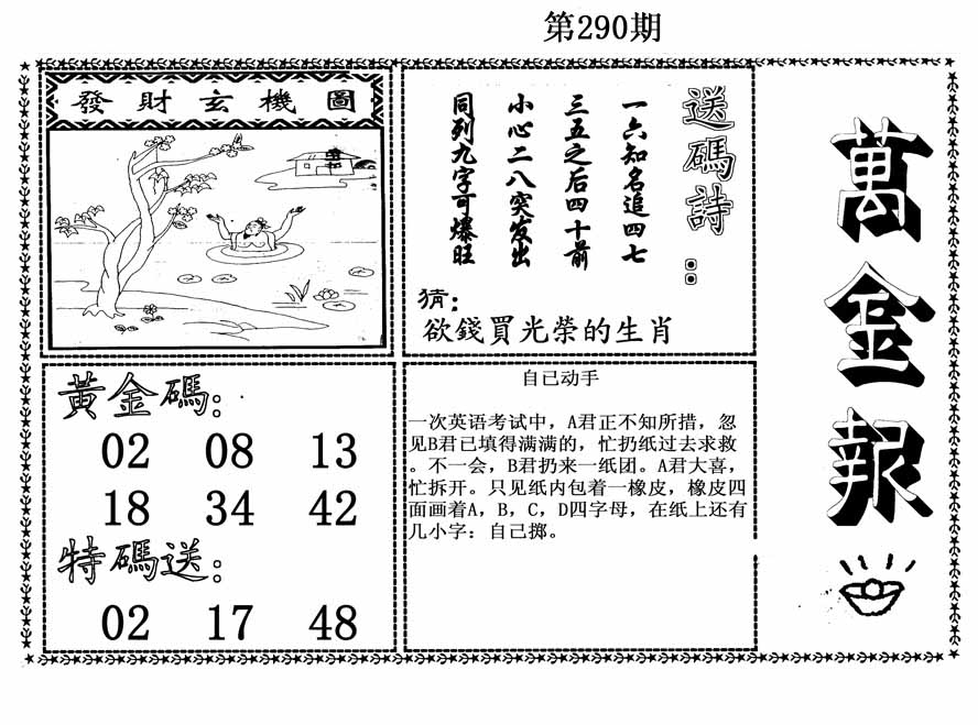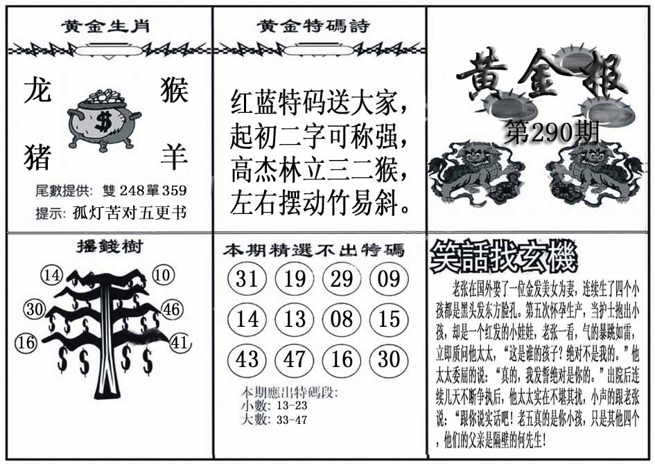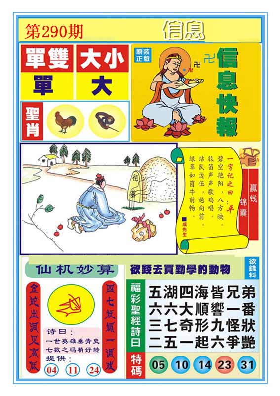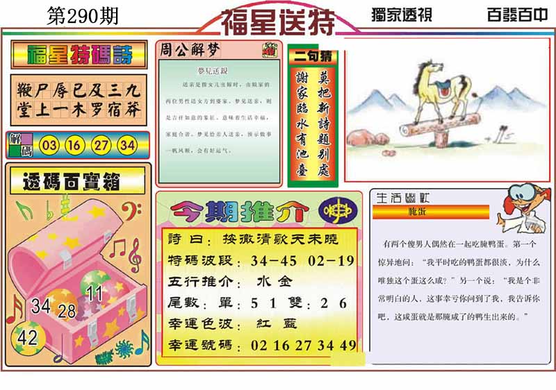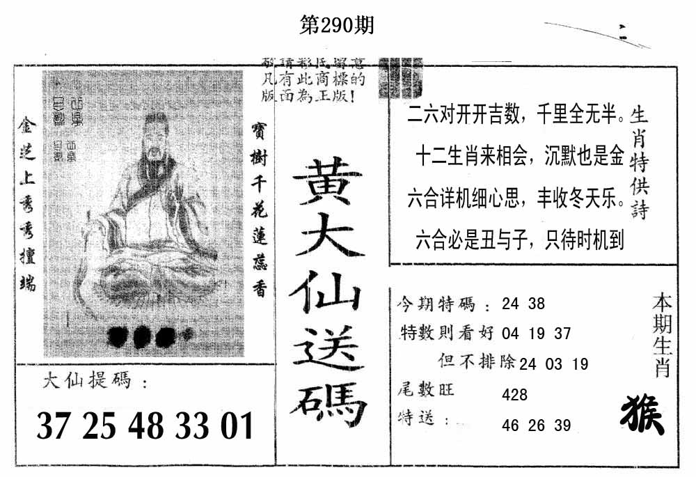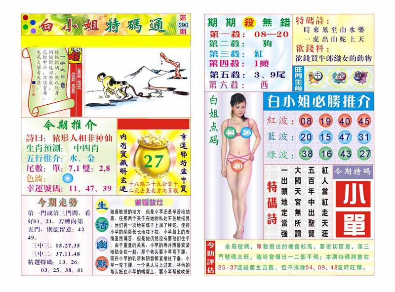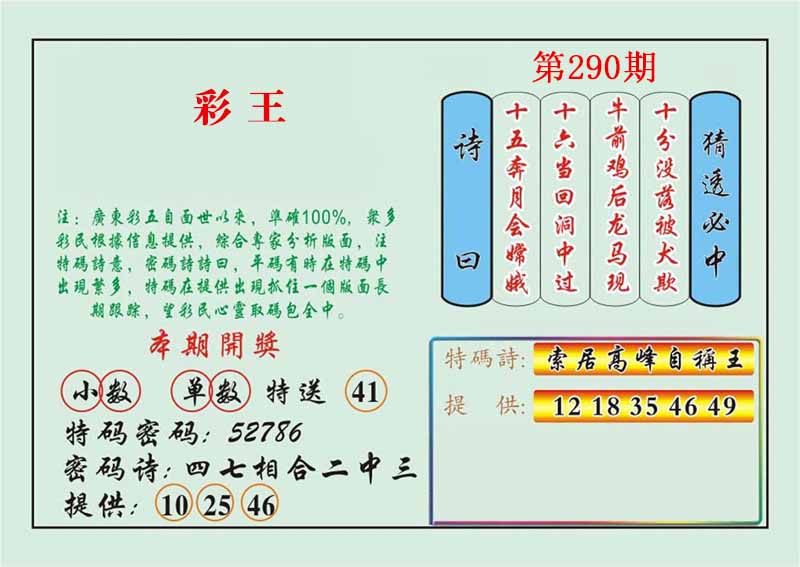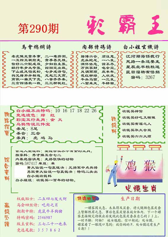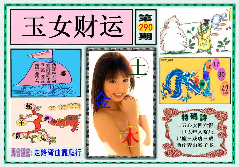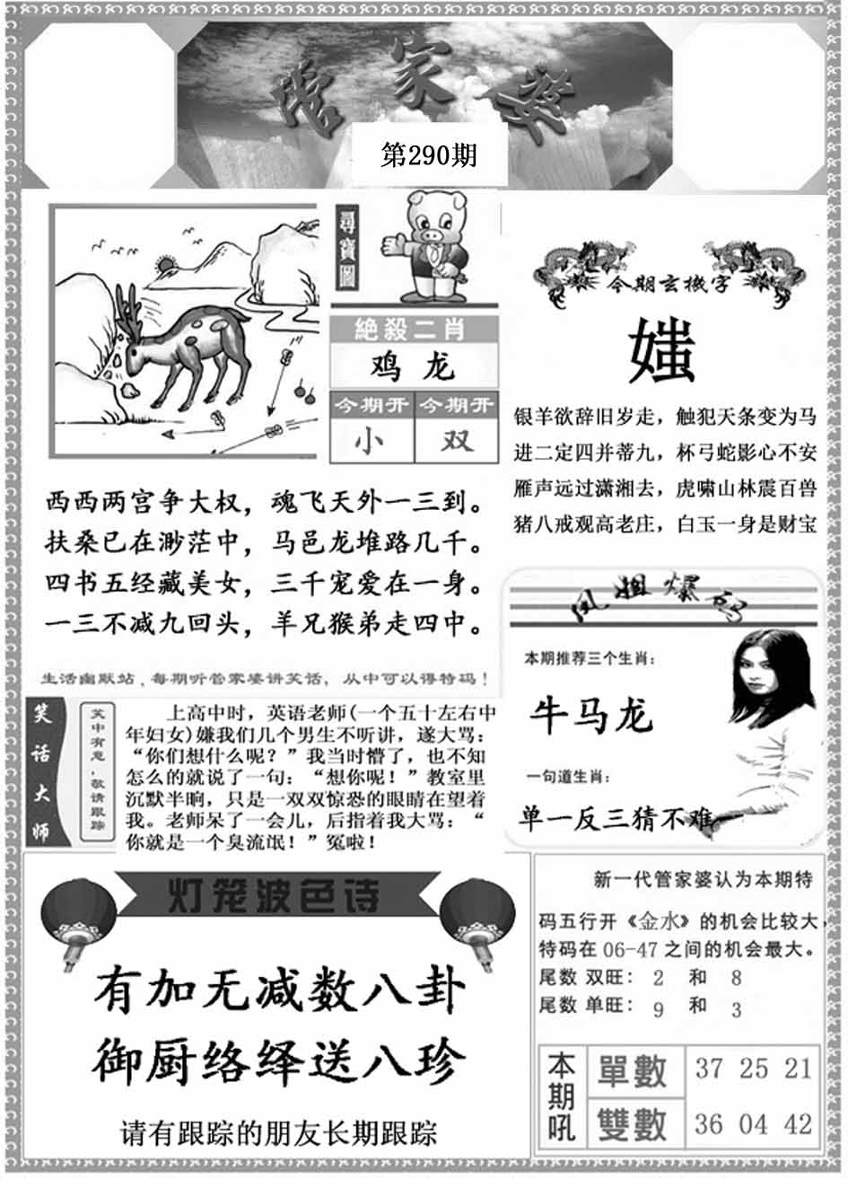 289期: 金牛王 【双数+小数】开:猴34准 |