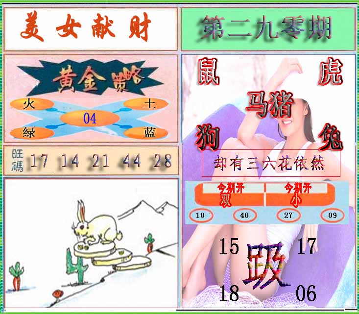 开猪07 兔(27,15) 虎(40,28) 牛(17,29) 狗(08,44) |