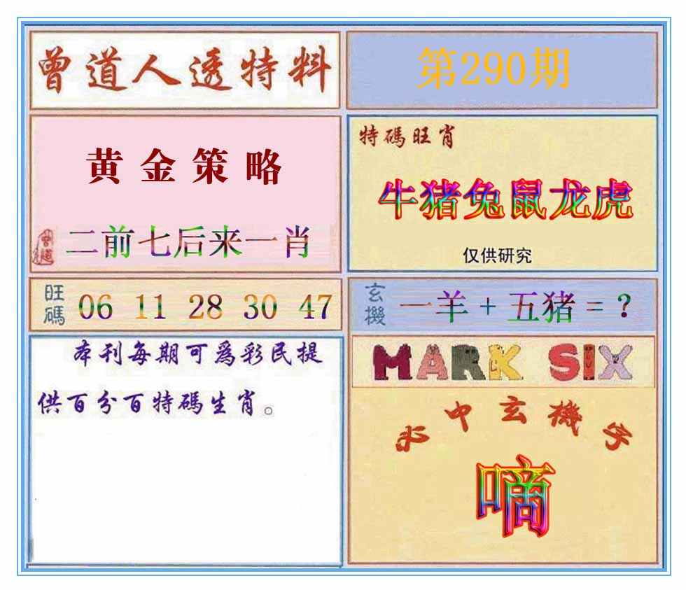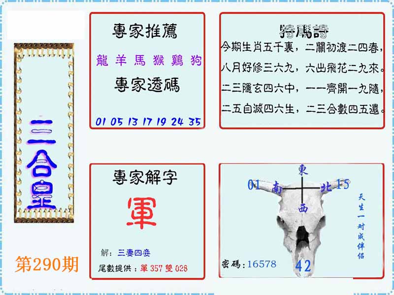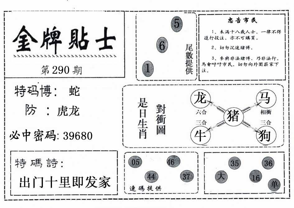 290期:⑤肖 | 兔龙蛇虎猴 | 0 |